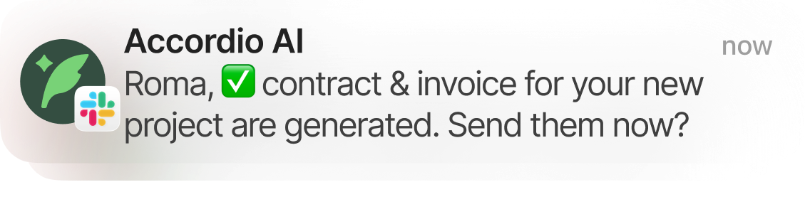 Rates, services, clients... already loaded. Every new contract starts with context. No retyping.